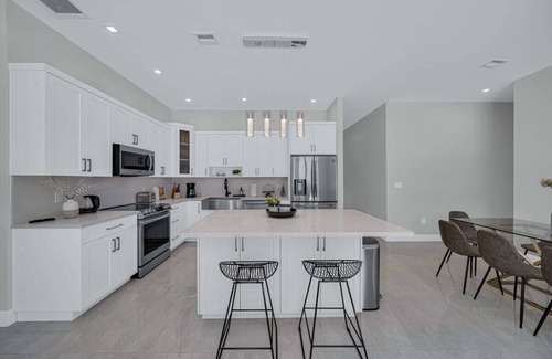 Welcome to the stunning Luxury Villa Amara w/Heated Pool Sauna Gym BBQ, a tropical paradise that provides an exquisite backdrop for your dream wedding. This brand-new villa, built in 2021, is nestled in the peaceful and private family-driven neighborhood of Golden Glades, Florida. With its inviting ambiance and elegant design, you and your guests will cherish your special day in this beautifully appointed space, surrounded by lush greenery and breathtaking sunsets.