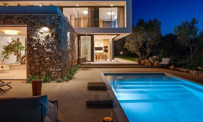Villa Authentic also offers additional amenities for the complete enjoyment and relaxation of guests, including a sauna and jacuzzi. In one of the living rooms, the hosts take special care of a centuries-old olive tree. Special attention is given to details such as materials, functionality, and connection to the nature of the surrounding landscape.