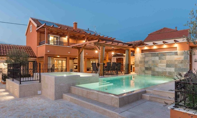 Luxury Villa Finessa Skradin 1 with heated pool, jacuzzi and sauna is located in Bicine. Luxury Villa Finessa Skradin 1 with heated pool, jacuzzi and sauna provides accommodation, featuring Pool, Private Pool, Balcony/Terrace, among other amenities. This Villa features Pool, Private Pool, Balcony/Terrace, to make your stay a comfortable one.