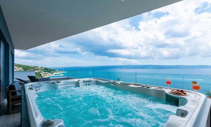 Welcome to our Luxury Villa Grande Aria with Pool and spend an amazing time on your vacation in Croatia! This luxury 10-bedroom villa in Split Riviera has a brilliant location in Jesenice, one of the wonderful seaside villages on the southern outskirts of Split City. It is just a 20-minute drive from the vibrant city of Split and a 10-minute drive to Omis town.This large holiday villa can accommodate up to 20 guests at once. It is the perfect choice for big groups of friends, family reunions, and team-building trips.Luxury Villa Grande Aria with Pool boasts stunning sea views and is within walking distance of the beach. The vicinity of the beach and the privacy this villa provides are just some of the advantages it offers.With its 700 square meters of indoor space, spread over 5 floors, Luxury Villa Grande Aria with pool abounds in space. It is designed for socializing and gatherings, and at the same time, it provides enough privacy for everyone. It is an ideal choice for a holiday with bigger groups of friends.All floors relate to an elevator and the internal staircase.The main floor is the ground floor. Here you will find a fully equipped kitchen and dining area. The dining table is adjustable to seat 22 -24 guests. Next, here is the living room with a television and fireplace.Large floor-to-ceiling windows provide an unobstructed view of the Adriatic Sea and Brac Island.On this floor, you will also find a gaming room with PlayStation. In addition, there is one bathroom with a shower on the main floor.From the living area, you exit the pool terrace. Here you will find a large swimming pool 10 meters long and 5 meters wide. It is completed with a heating option; massage jets and has pool waterfalls. There is also an outdoor shower with warm water.Next to the pool, you will find a sun deck with 12 sunbeds and an outdoor dining area. Here is also a barbecue (wood or charcoal).The basement level features a fully equipped gym, sauna, and additional bathroom with shower. Here is also a billiard table, table soccer, and darts for entertainment. Laundry facilities are also on this floor.On the first floor, there are four bedrooms. Two of them have a king-size bed (180cm wide × 200cm long) and the other two have twin beds. All have an en suite bathroom with a walk-in shower.On the second floor, there are five bedrooms and four private bathrooms with shower in total. Two of them feature king-size beds and three have twin beds. One bedroom on this floor doesn’t have a private bathroom. Instead, it has access to the bathroom on the lower floor.On the third floor, there is a tenth bedroom. This bedroom also features a king-size bed and has a private bathroom. In addition, on the balcony, there is an outdoor jacuzzi.All bedrooms are air-conditioned.Providing plenty of space, Luxury Villa Aria Grande is ideal for multiple couples, big family reunions, or groups of friends. Young groups are also welcome, but prior notice is required. This villa is suitable for holding smaller private events and celebrations. However, prior notice is required, and the event needs to be approved before the booking.Finally, at the property, private parking for up to 7 cars is secured. The garage is at your disposal, too.Pets are not allowed.Within a 10-minute walking distance from the villa, you will find restaurants, a cafe, and a grocery shop. Some of the most beautiful sandy beaches in Dalmatia are within a 5-minute drive from this stunning villa.The location in the center of the beautiful region of Dalmatia offers many options for day trips. Luxury Villa Grande Aria is a great starting point for exploring coastal towns Split, Trogir, Omis, and Makarska. We also recommend a visit to the Krka waterfalls (a 1.5-hour drive) and a boat trip to the islands of Brac, Solta, and Hvar.Choose Luxury Villa Grande Aria with Pool for your next vacation and get ready for an amazing stay in the heart of Dalmatia!