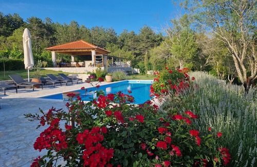 Villa offers all that guests need for nice , relaxed and very private vacation in forest environment of middle Dalmatia . All big cities in region ( Split, Šibenik , Kastela , Omiš , Trogir ... ) or rivers ( Krka , Cetina) are in 30 to 60 min drive , so guests can see all of them during the day rush and still have their own private luxury place for relaxation with family and friends by the large pool or in our "konoba".
