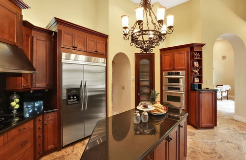 Sparkling clean and comfortable, surrounded by a tropical landscape luxury villa with a multileveled backyard, heated pool and heated jacuzzi to relax after a day of fun. You can also indulge in a relaxing hot tub in the Primary Bathroom and pamper yourself with a massage. You’ll find darkening blinds on windows in every room for restful sleep, new luxurious bedding and towels, and a high-end resort-style setup. The 16-foot ceiling, solid wood mahogany doors for privacy in every room, quiet study room/office to read a book or send emails, top chef's kitchen and wine caller are for the most refined taste. Everything spells luxury and comfort in this home. Vacationing with kids? We are children-friendly! We offer a baby crib, toddler bed, changing table, rocking chair and a high chair upon request. See our photo gallery for baby room set-up.