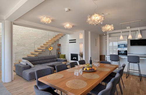 Book our modern Luxury Villa Imperio with the heated infinity pool with hydromassage, near Split. This beautiful 5-star villa offers 6 bedrooms, and 7 bathrooms and can accommodate up to 11 guests.