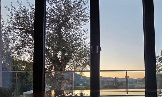 Enjoy comfort, nature, and art in this elegant villa featuring 2 bedrooms (king & queen) with private bathrooms, a cozy living room with a fireplace, a gym, and a fully equipped kitchen. Relax on the patio with a grill, in the lush garden, or the sunbathing yard. Minutes from amazing beaches, Corfu Golf Club, hiking trails, wineries & Aqualand. Private parking & easy paved access. Book your stay today!
