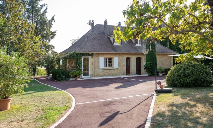 This elegant 4-bedroom villa in Vélines accommodates up to 8 guests and is perfect for a relaxing summer getaway. Nestled in the heart of Dordogne’s wine country, it features a beautifully landscaped private garden, a terrace with barbecue, and child-friendly amenities including a high chair, children’s bed, boules court, and play equipment. The home is just 100 meters from the town center, with shops and essentials within 1 km.