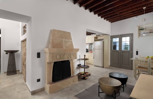 The main house consists of an open plan lounge with fully fitted kitchen with seating and dining area around the original feature oven and fire place. There are two bedrooms one with king size Lindian bed and the other with a double mattress, both protected with Coco-mat toppers. The bedrooms can be accessed separately or they also interconnect for use as a family suite. The main master bedroom has an ensuite shower/WC. There is a further family bathroom with bath and shower is adjacent to the family suite and lounge area.The adjacent building has two further bedrooms, one with Lindian king size bed , one with twin beds and both with ensuite shower/wc. All the shower rooms are fully tiled with luxury rain showers.