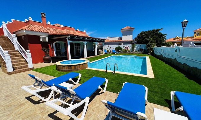 - STUNNING VILLA WITH HOT TUB, 10 MINS WALK TO THE BEACH,WITH COMMUNAL POOL.