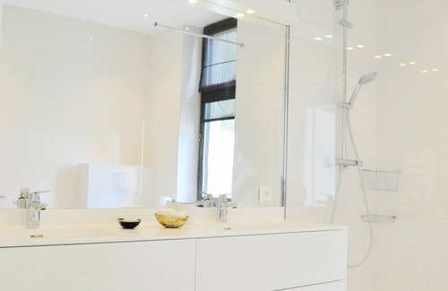 - a master bedroom with a bathroom composed of a bath, a shower and a toilet