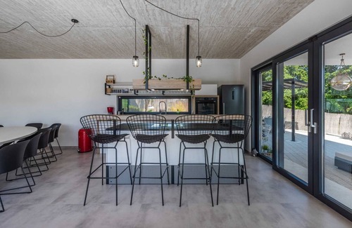If you are looking for a destination for your holiday, choose Istria in Croatia and stay at this Luxury Villa Queen B with Infinity Pool!The Villa Queen B is located in Vizinada a beautiful part of Croatia, made for a family get-together of a group of friends just wanting to relax. On the ground floor of the Villa, you will find the fully equipped kitchen, the living room, and the terrace where the outside dining area and the infinity swimming pool are located (14x 4x 1,45 Meters). The stairs will take you to the upper floors where the 7 luxury bedrooms and en-suite bathrooms are located. In two of the bedrooms, there is the option to separate the king-size bed into two single beds. Luxury Villa Queen B can accommodate up to 14 people and offers the guests a beautiful infinity Pool, Billiard table, free Wi-Fi, Smart TV, satellite channels, 5 parking places, and lovely views of greenery. The house is only 30 meters away from the Café bars and restaurants and a short drive away from the beach.Note: Groups under the age of 25 pay a double security deposit.Visit lovely Istria and stay at our modern Luxury Villa Queen B, the name itself tells you what the house is like!