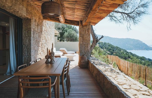 Luxurious stone houses nestled in the heart of the Corsican maquis, within a private waterfront estate.