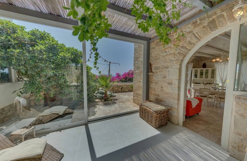 Villa Thea is bordered with big Stone walls you are covered, you pass through the separate entrance up the steps to the villa