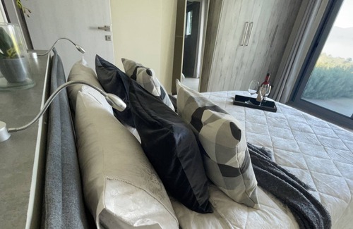 To Villa Levanda fully renovated to a high standard in 2022! with a living area of 227 m2 with space for 10 people belong to about 2000 m2 of land. The plot is part of a west-facing 40000 m2 fully fenced plot on a hillside with direct access to the beach. The village of Sparto is about 1.5 km away and offers typical Greek shopping (bakery, gas station, small supermarket). The nearest town is Amfilochia with a beautiful promenade, 9 km away. In this small Greek town you will find everything you need for care (health centre, doctors, taverns, supermarkets) and in the small harbour you will also find a berth for your boat. Every Wednesday there is a big market day here. A wide range of sailing ships and yachts can be rented in the harbour of the city of Lefkada (approx. 50 km). The nearest airport is Preveza, 45 km away. Athens is about 3.5 hours away by car. The journey time from the ferry port of Igoumenitsa is about 1.5 hours.