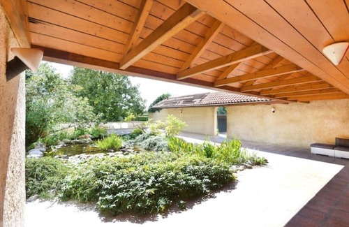 The villa has three bedrooms (one suite, one double and one single) and two bathrooms, a large living room 9 metres high, two porches, one of which is over 120 square metres, a warm dining area and a large kitchen area divided into two rooms. The loft area houses the pleasant library and music room. All furnished with modern taste and wood panelling. Other service areas are available. All surrounded by nature in over 10,000 square metres of parkland, with three hills and several woods, designed by an architect. Smart Tv and wi fi. Washing machine, dishwasher, microwave and everything you need. Possibility of cot or high chair for children.