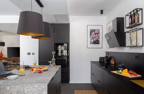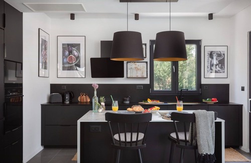 Spreading over 290 m2 the villa consists of a fully equipped kitchen that features dishwasher, refrigerator, microwave, stovetop, kettle oven and coffee machine.
