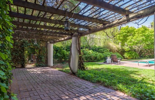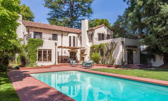 Luxury Historic Downtown Palo Alto Mansion with amazing pool and idyllic huge gardens, climbing roses, wisteria, pergola, outdoor + indoor fireplaces, separate office spaces/conference rooms, fast Wifi. This special house w/pool is close to everything, walk to downtown Palo Alto, Stanford, close access to 101, best neighborhood. A unique opportunity.