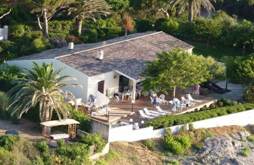 Idyllically located, 5-bedroom beachfront villa with separate 2-bedroom annexe, panoramic sea-views, direct access to the sea and 2400 m2 of landscaped garden, only 30 minutes from Ajaccio.