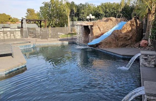 This Luxury Villa, with bonus pool house, Private Pool, Hot tub, rock water fall and slide, putting green, basketball, shuffle board, play gym, privately gated on circular driveway in Las Vegas is well equipped and has all facilities that have been listed below. Please note that these details were shared to us by booking.com for the listed “Luxury Villa, with bonus pool house, Private Pool, Hot tub, rock water fall and slide, putting green, basketball, shuffle board, play gym, privately gated on circular driveway”. We solely rely on their shared details and are regarded as “accurate”. If you have any concerns about the information or accuracy describing this Villa, please let us know.