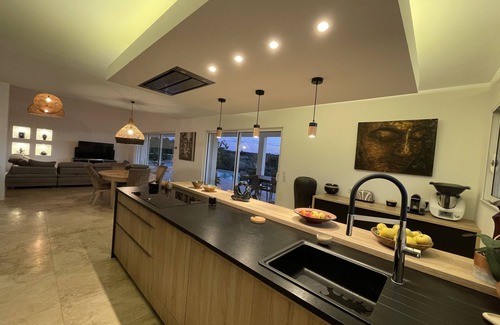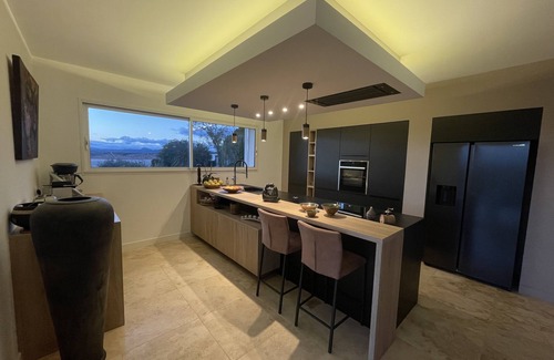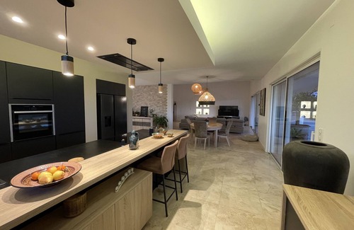 This magnificent, luxurious villa, with its zen-like, comfortable atmosphere, is the perfect place for a rejuvenating holiday. Its large covered terrace and heated, secure swimming pool (submerged roller shutter) with a stunning 180-degree view over the Hérault valley will delight you for a relaxing stay with family or friends.