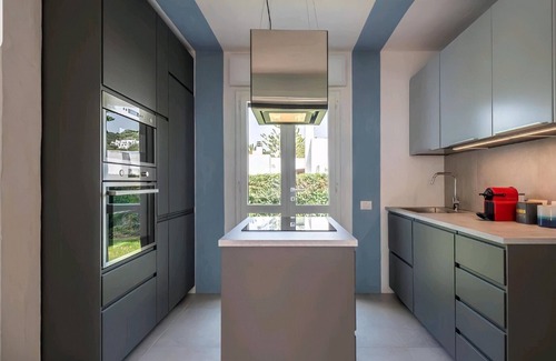 Immediately after there is the kitchen with electric ovens and microwave, induction hob and coffee machine already provided. Equipped with dishwasher, refrigerator, freezer and minibar. Private chef on request.