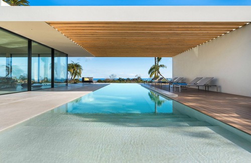 Surrounded by an enchanting Mediterranean garden, this exclusive residence boasts a splendid infinity pool plus spacious and well-equipped terraces overlooking the countryside and the sea, where views extend all the way to Taormina and Mount Etna. Hermosa is a modern villa designed and built in full respect of the environment, availing of eco-friendly technological and building solutions, including solar-thermal and photovoltaic systems, a heating-cooling system and thermal-break aluminium windows. Perfect for relaxing holidays in spaciousness, luxury and comfort, Villa Hermosa stands out for its refined contemporary design. The interiors are split across three levels interconnected by an easy internal staircase. On the ground floor is a super-equipped kitchen and extensive living area with large full-height windows, opening out onto the terraces, garden and swimming pool. On the first floor is the sleeping area with each of the three bedrooms having a patio and private bathroom with shower. On the lower floor, rather, there is a fourth bedroom, again with en-suite with shower, along with an exclusive wellness area with a roomy hot tub, sauna, Turkish bath, emotional shower and fitness area. The fully air-conditioned residence is equipped with only the best comforts: Wi-Fi, Smart TV, washing machine, dryer, dishwasher, electric oven and microwave, espresso machine and American coffee maker, wine cellar, ice machine, barbecue area and private parking. Yet, Hermosa is also an ideal starting point for setting out on a short drive to the beautiful beach of Fondachello, Taormina, Etna and Catania. Further south are Syracuse, Vendicari and the evocative baroque towns of the Val di Noto.Interior:Ground Floor: large living room with TV and dining area, kitchen, 1 guest bathroom, laundry. First Floor: Entrance, 1 double bedroom (180x200 cm) with bathroom-shower, 2 double bedrooms (160x200 cm) with bathroom-shower. Lower Floor: 1 double bedroom (180x200 cm) with bathroom-shower and mini bar, fitness area and wellness area (hot tub, sauna, Turkish bath, emotional shower and bathroom), cellar.Exterior:Veranda, terraces, garden, swimming pool, solarium, 1 bathroom (WC and sink), barbecue area with wood oven and dining area.Additional notes:- In a reserved area of the property lives a young couple who discreetly and professionally take care of the maintenance of the house, the garden and the pool.- The swimming pool and wellness area (hot tub, emotional shower and relaxation area) can be used freely.For the sauna and Turkish bath, it is necessary to notify the staff on site 3 hours in advance.Check-in: 5:00 PM - 9:00 PMIncluded services: final cleaning, bed and bathroom linen, water, electricity and gas consumption, air conditioning, heating.Extra services (to be paid on site): cash deposit of 2000 euros.