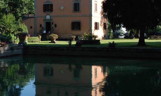 This magnificent villa is located near the Albano Lake just outside Rome in natural surroundings of great value and fascination, among lakes surrounded by woods and forests, volcanic lands, vineyards and olive groves. It is surrounded by 22 acres of park in the beautiful Castelli Romani Park Area, near Albano Laziale. It provides the perfect place to relax and enjoy the culture and cuisine of Rome and Latium. The Villa overlooks hanging gardens and provides sweeping views of the lake. Rome is within easy reach, as the other medieval villages like Castelgandolfo, Grottaferrata, Nemi and Ariccia. The Villa has three floors, 10 rooms, out of which 2 living-rooms, 1 dining room, WiFi Internet, TV/Sat, DVD, Videogame console, Radio/CD, 3 en-suite double bedrooms, 2 triple bedrooms with one bathroom in common, 1 en-suite quadruple bedroom, one bedroom with bathroom in the tower, kitchen with large dish washer, refrigerator, freezer, double oven, microwave and Nespresso. Laundry room, children playground with tennis table and table football, outdoors furniture, garden, park with pond, Swimming pool (7x14 mt - 3,50 mt depth, available from end May to September) with sunbeds, sunumbrella, gazebo, changing room and showers, football field, gate’s remote control and parking.
