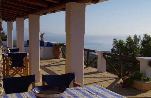 The main part of the house is made up of a comfortable sitting room/dining area with a charming open plan kitchen. On the veranda there is a huge dining table with panoramic views of the surrounding landscape. There is ample seating around the terrace with various shaded areas and a swimming pool with lots of sunbathing space. Yerakina is the ideal villa for families or a group of friends; it has the seclusion that enables privacy and peace. The veranda and terrace space offers magnificent views and is perfectly designed for outdoor living and entertaining.