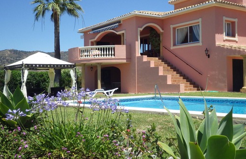 This very spacious luxury villa will comfortably accommodate 10 guests. This is a private, fully equipped home and has a large terrace featuring both dining and lounge areas with BBQ. This balcony has 180 degree open views over mountain, sea, Gibraltar and Africa on a clear day. Driveway parking for 6 cars. Downstairs is a pool table with fridge for cold drinks and a convenient pool changing room. There is a table-tennis table with bats and balls provided. Gardens and terraces around the house. Good size heated pool with sun loungers, garden chairs and side tables. Additionally, there is a lovely Gazebo with comfortable sofa and chairs. Lovely beaches within 5 min drive including Cabopino and Nikki beach by the Don Carlos hotel. This is a no smoking villa with plenty of outdoor areas for smokers.