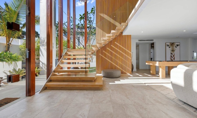 Indulge in the ultimate resort-style amenities, including a heated swimming pool and spa, rooftop terrace, and designer outdoor living spaces. Entertain effortlessly with a pool table, table tennis, smart TVs throughout, and an integrated Sonos speaker system. A gourmet kitchen with a Nespresso coffee machine ensures your mornings start with perfection.