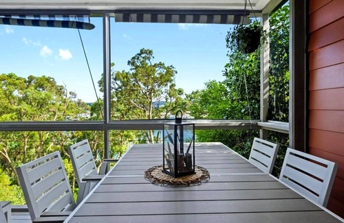 Positioned with an expansive elevated water view from a large indoor / outdoor (fully screened) entertaining deck, the cottage features two levels with very private accommodation for two couples with a king sized bedroom with private ensuite on the upper level, and queen sized bedroom and bathroom on the lower level, with a private deck. There is a queen sized sofa bed on the upper level as well.