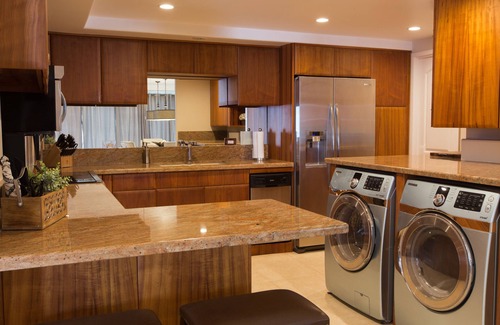There is a 55" Smart TV in the living room and a 32" Smart TV in the master bedroom. The contemporary kitchen includes granite counter tops, bar seating and top-of-the line appliances. You can either open the wall of sliding glass doors to enjoy the tropical breezes or turn on the air conditioning and ceiling fans for additional comfort. The ocean-facing lanai offers an outdoor eating area with patio table and chairs and two chaise lounges for relaxation. Unlike most rentals in Waikiki, a garage parking space is also included. We've tried to think of everything you might need for a memorable Waikiki vacation including beach chairs, beach towels, beach umbrellas and body boards for your use. Also, rest assured knowing the condo is safe with secured building and elevator access.