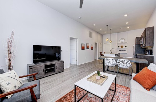 BRAND NEW upscale 1 bedroom apartment w/ king bed walkable to downtown Fishers. Complex is conveniently located next to nature preserve, walking path, & nickel plate trail. Enjoy walking to downtown Fishers to have coffee, ice cream, casual or fine dining. Enjoy the amazing amenities: pool, hot tub, luxury fitness center, business center, clubhouse lounges, & outdoor grilling space. 10 minutes to Ruoff Music Center.