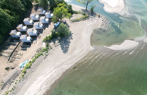 - Spacious Accommodations: Enjoy ten charming two-story lodgings that accommodate up to 40 guests, featuring two bedrooms, a well-equipped kitchenette, and a private rooftop patio with breathtaking lake views.