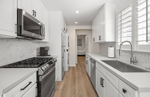 Introducing this stunning one-bedroom + den, one bathroom unit in the heart of West Beach area of Santa Barbara. The living area features a pull out queen sofa, Smart flat screen tv, and a dining room table. The remodeled kitchen comes fully stocked with all the appliances and utensils you need. With vibrant restaurants, cafes, and shops nearby, this Beach Villa is perfect for anyone looking to experience the best of Santa Barbara!