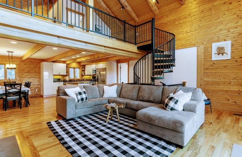 Our luxury White Mountains cabin overlooks the lovely town of Littleton, offering convenient access to New Hampshire's best mountains. The Cannon Ski Resort, situated in the dramatic Franconia Notch is less than fifteen minutes away while Bretton Woods (and Mount Washington Hotel) is within a half hour's drive. Five minutes away are high quality groceries and a stroll through town will reveal restaurants, breweries, and other amenities (banks, ski shops, convenience stores) along the river.
