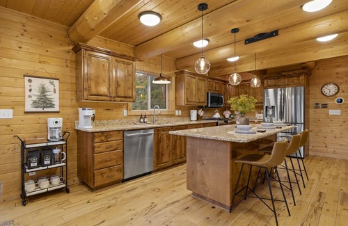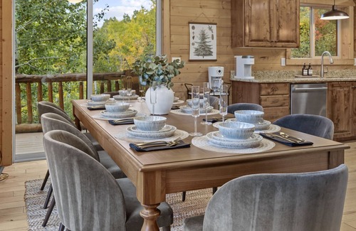 Open Concept Delight: Our cabin's open concept living, kitchen, and dining area is designed for unforgettable moments with loved ones. Gather around the cozy fireplace or prepare delicious meals in the fully-equipped kitchen while sharing stories and laughter.