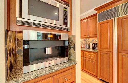 This Grand Estate is located in a park like setting on a 3 acre fenced and gated property with own trails. Take one of the trails to own gate that opens to a 20 acre city park with multiple walking trails, playground and a stream. The main house has 4 bedrooms. There is also an additional 600 sf guest house on the property with a loft style accommodation which can house up to 6 guests. The property can accommodate up to 14 guests in both buildings.