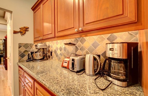 The main house features vaulted ceilings and the floor to ceiling gas fireplace. The owner's collection of scale sailing ships adds to the grandeur of the space. Gourmet kitchen is huge with professional stainless steel appliances and oversized island with lots of sitting room around it.