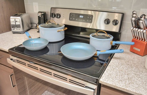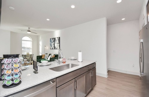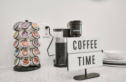 After spending the day exploring or taking care of business, return to your comfortable queen-size bed, or snuggle up in the cozy living room with your favorite book in the evening! The living room is well equipped for comfort and you can catch up on your favorite series on the 43” HDTV with Amazon Prime, Apple TV, Disney+, Netflix & Roku! We've conveniently placed bedside table lamps that include a USB cord and outlet area for fast charging of your electronics. The fully equipped kitchen features all of the essentials needed for whipping up your favorite meals or making great coffee and cappuccinos!
