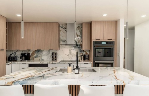 Step into a world of modern elegance and comfort as you enter . The sleek, contemporary design is complemented by stylish furniture, creating an atmosphere of sophistication. The kitchen, equipped with high-end appliances, is perfect for preparing gourmet meals, which can be enjoyed indoors or al fresco in the spacious outdoor lounge area. The modern kitchen is located right off of the main living areas, and is loaded with all the kitchen essentials & a coffee station (including a Keurig & coffee pods). It opens up to the rest of the living area, making this a great spot for entertaining!