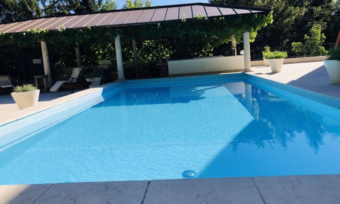 Relax by the outdoor pool or sip a drink in the garden of this 6458-sq-ft villa, which also features a deck or patio and a firepit. For a change of scenery, come inside and try your hand at table tennis, or enjoy the free WiFi and TV.