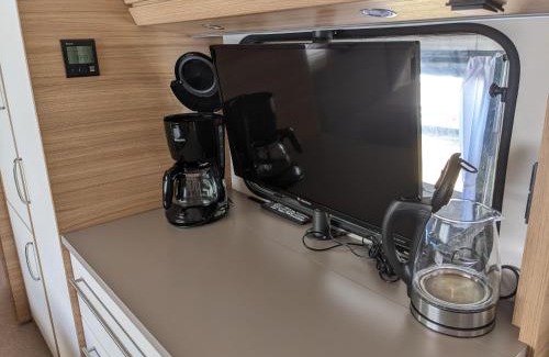 Luxuswohnwagen Butterfisch am Kransburger See 420 is located in Kransburg, just 12 miles from Stadthalle Bremerhaven and 13 miles from Bremerhaven Central Station. Providing a restaurant, the property also has a garden and a terrace. Outdoor seating is also available at the campground. With free Wifi, this 1-bedroom campground provides a flat-screen TV and a fully equipped kitchenette with a fridge. The accommodation is non-smoking. Alte Liebe Harbor Platform is 14 miles from Luxuswohnwagen Butterfisch am Kransburger See 420, while Havenwelten Bremerhaven is 13 miles away. Bremen Airport is 54 miles from the property.