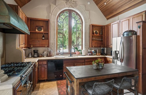 The villa boasts an array of features designed to enhance your wedding experience. You will find beautifully crafted architectural details such as vaulted ceilings, limestone flooring, and custom arched windows that create a romantic atmosphere. The gourmet kitchen and spacious dining area, complete with a great fireplace, provide an inviting setting for celebratory meals. Outside, the enticing patio and backyard with a pool and spa offer a serene space for relaxation or outdoor receptions, while a charming guest house ensures comfort for visiting family and friends. For added convenience, the villa is equipped with a comprehensive security system, ensuring peace of mind during your stay.