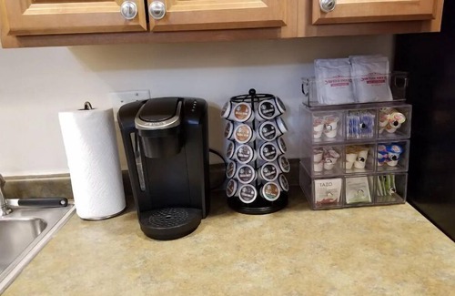 Amenities abound: ~FREE WiFi ~2 smart TVs w/HBO, SHOWTIME, Cinemax, 144 cable channels, Netflix ready (with your account) ~Full kitchen with fridge/gas stove/dishwasher/microwave/toaster oven/Keurig ~FREE washer & dryer with basic supplies ~Bathroom w/shower/tub combo ~Non-smoking ~Complimentary weekly cleaning/linen laundry for extended stays