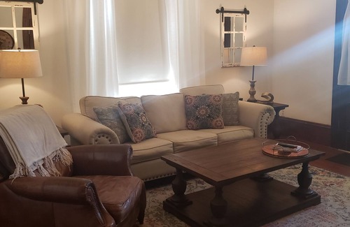This beautiful, Victorian-style home is a perfect getaway. Located just off the square in historic Lynchburg, TN, it's a short walk to the world-famous Jack Daniel's Distillery. There are lots of places to relax; rocking chairs on the front porch, Adirondack chairs and corn-hole in the back yard. You can also visit Tim's Ford Lake or enjoy the southern hospitality of Miss Mary Bobo's restaurant. The beds and furnishings are all very comfortable and ready for your enjoyment!
