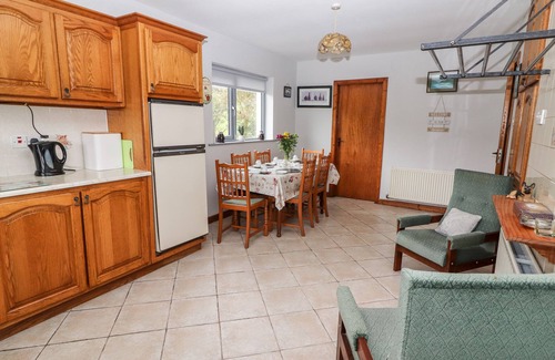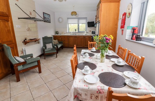 Amenities: Oil central heating with open fire. Gas oven and hob, microwave, fridge/freezer, washing machine, tumble dryer, TV with Saorview, DVD, selection of books and games. Fuel and power inc. in rent from April to October, charged by meter reading from November to March. Starter pack for open fire inc. in rent. Bed linen and towels inc. in rent. Ample off road parking. Lawned gardens with furniture and BBQ. One well-behaved pet welcome. Sorry, no smoking. Shop and pub 2 miles.