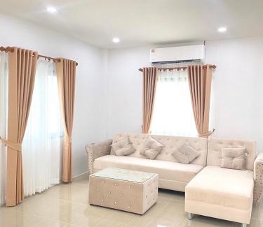 M&M garden house is located in Ban Phlu Thong, just 11 miles from Chiang Rai Saturday Night Walking Street and 12 miles from Clock Tower Chiang Rai. 11 miles from Wat Pra Sing and 11 miles from Statue of King Mengrai, the property features a garden and a terrace. Free Wifi is available throughout the property and Mae Fah Luang University is 2.7 miles away. The air-conditioned resort village consists of 1 separate bedroom, 2 bathrooms with free toiletries, a seating area, and a living room. Towels and bed linen are available in the resort village. The property has an outdoor dining area. Central Plaza is 13 miles from the resort village, while Wat Rong Khun – The White Temple is 19 miles from the property. The nearest airport is Mae Fah Luang - Chiang Rai International Airport, 8.1 miles from M&M garden house.
