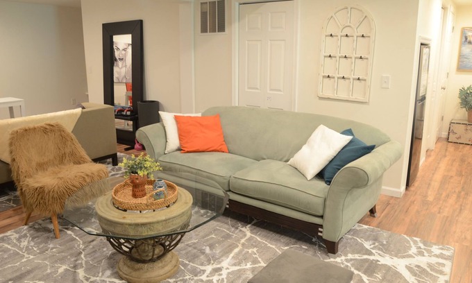 Get cozy and relish ample space in this entirely private 900 sq ft basement suite featuring 1 bedroom and 1 bath. Enjoy a garden view, backyard access, and an ideal location. Nestled on a Northern VA farm, it's within walking distance to downtown Leesburg, walking trails, and less than an hour from D.C. Explore wine country, also within an hour from D.C.