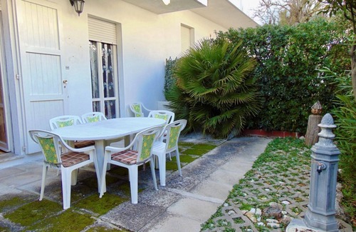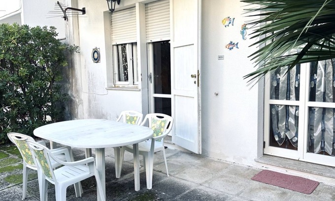 Description: Ground floor. Living room with dining table, sofa and kitchenette - double bedroom - bedroom with two single beds (one pull-out) - bathroom with washing machine - garden equipped with table and chairs on the front - external courtyard on the back. Private and reserved parking space inside the private courtyard.