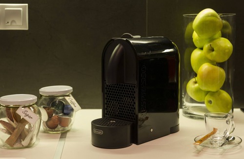 •Modern kitchen with electrical appliances such as fridge with freezer, oven with independent hobs, coffee machines (nespresso and filter), toaster, boiler, juice extractor. There are pots and cutleries, dishes, glasses, teapot, coffee kit and also coffee(nespresso), sugar, tea (special kinds of Greece),