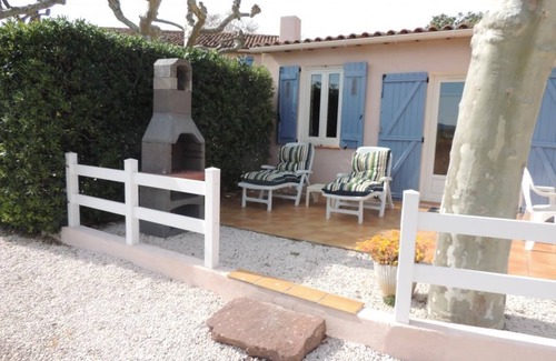 Small single-family house on a vineyard of 3ha near the owner and another gite, shaded terrace with garden furniture and barbecue, private parking. Walks in the Massif des Maures. Ground floor: living room kitchen equipped with corner TV lounge and 2 armchairs, a bedroom with a double bed, bathroom with wc cloisonne. Electric heating. ANY OVERFLOW WILL BE ACCEPTED.